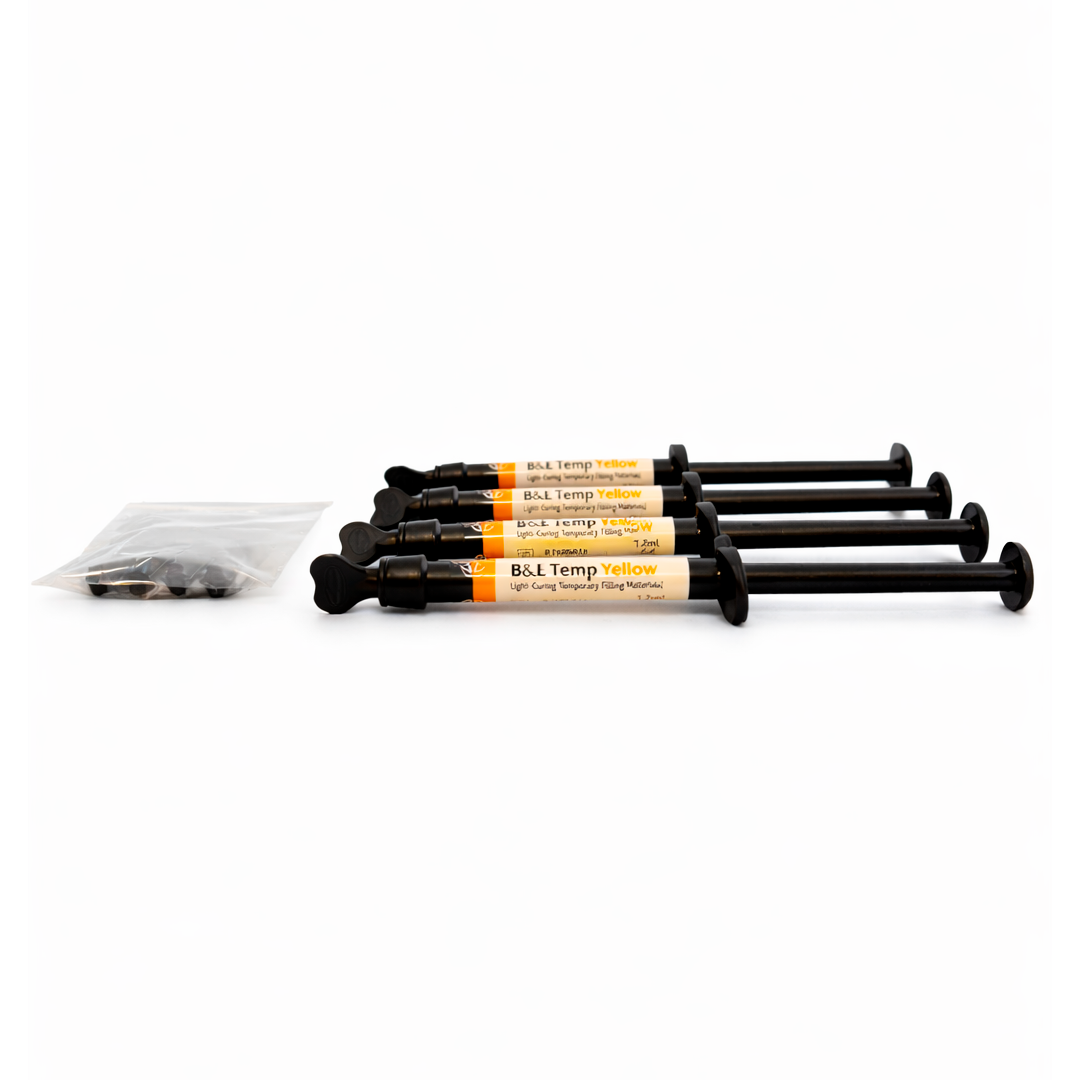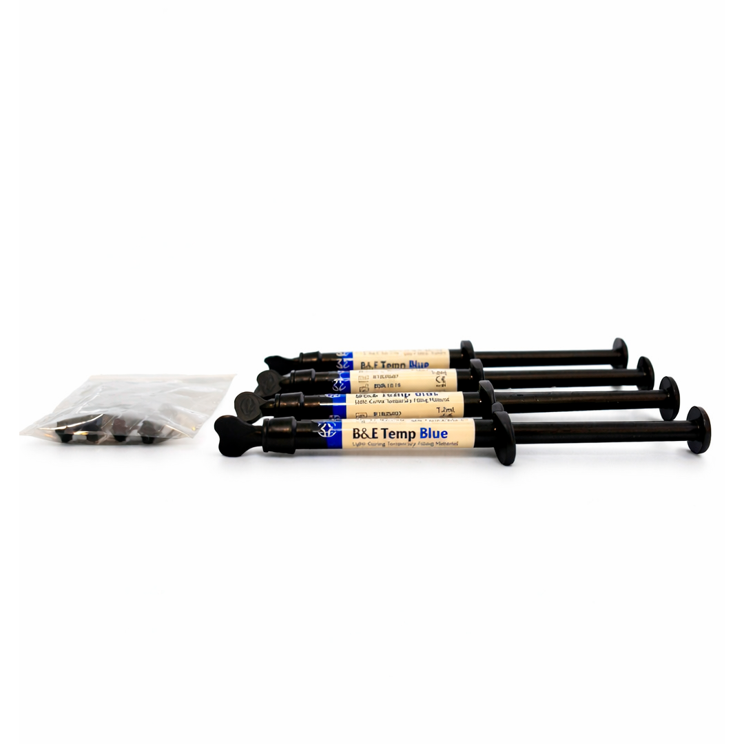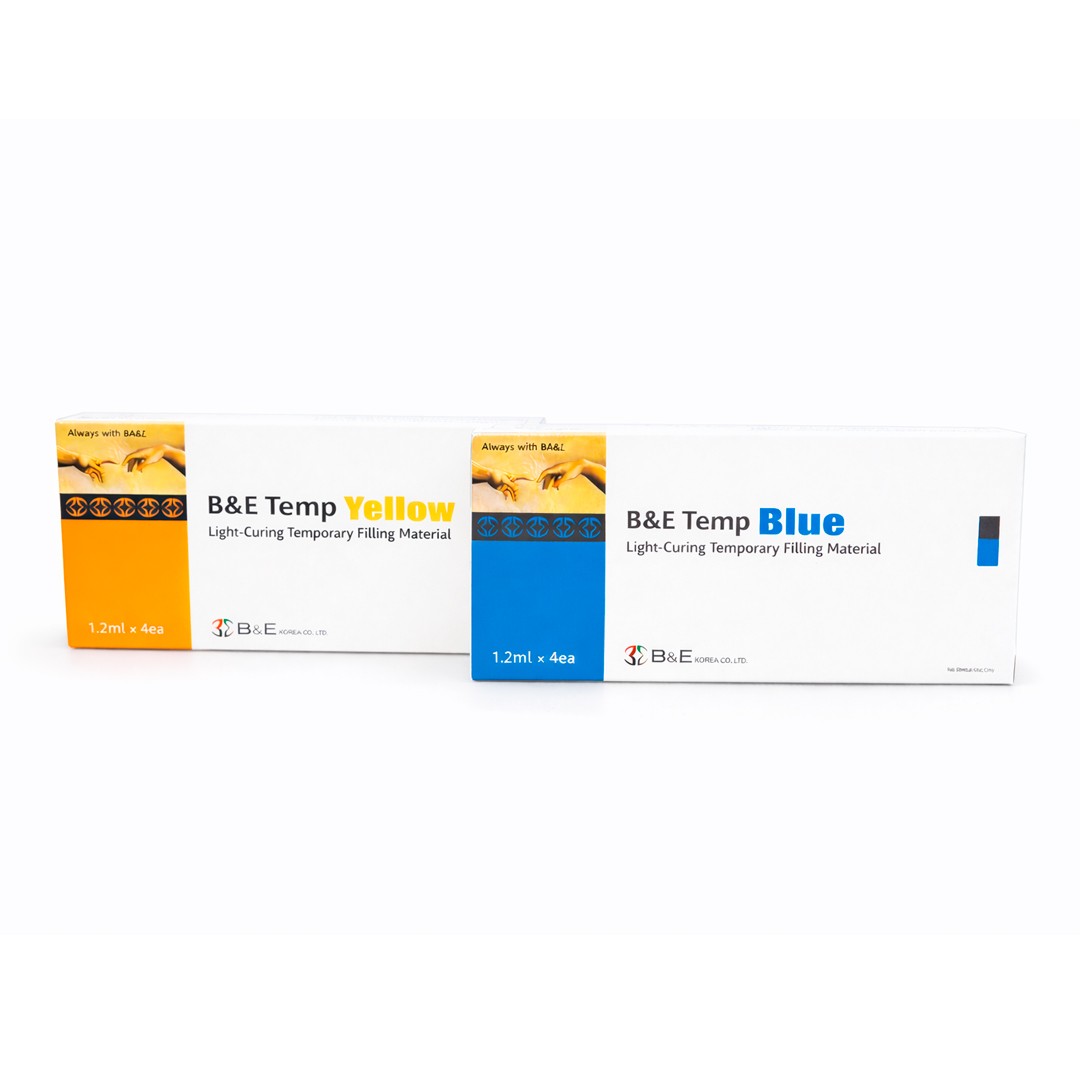 B&E Temp y X-Temp son materiales de obturación temporales fotopolimerizables. Tienen características de fácil remoción de las cavidades, alta elasticidad y gran resistencia.