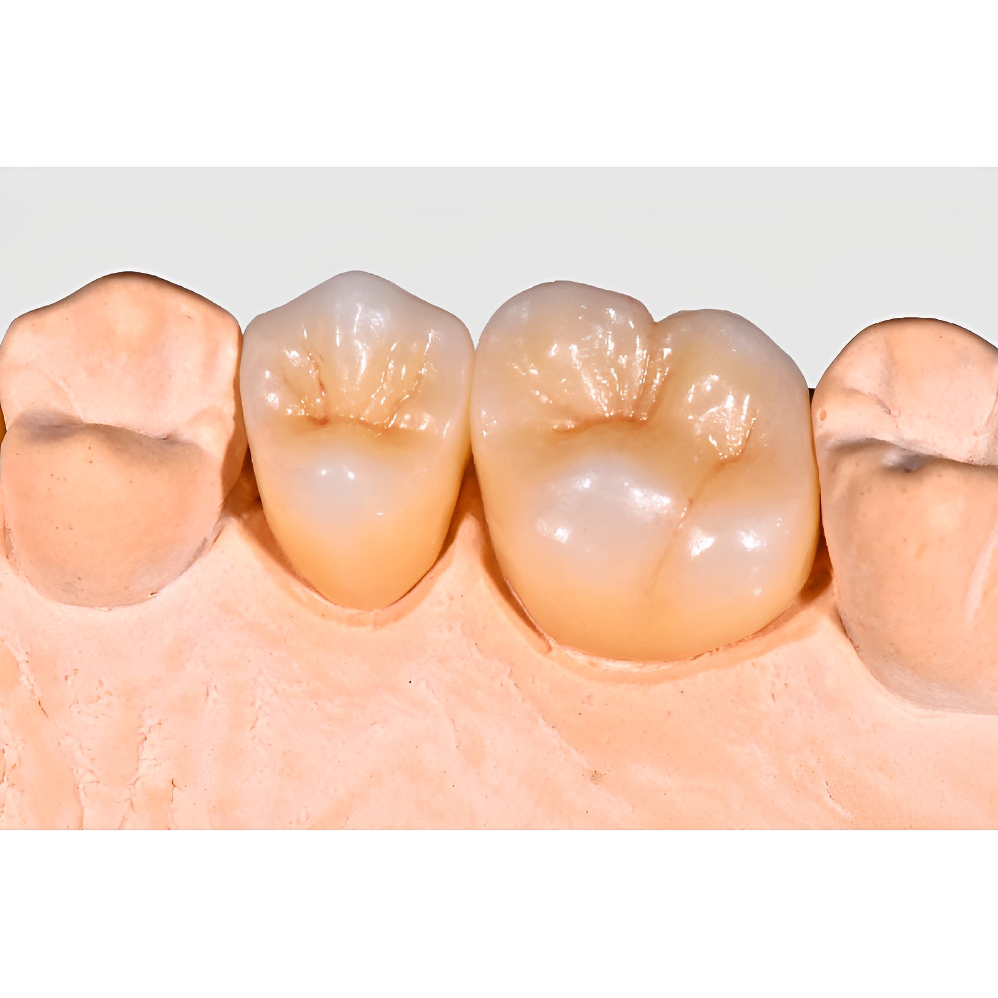 | Uso | Corona única (posterior), cofia, puente posterior de contorno completo (hasta 3 unidades), estructuras de puente de varias unidades con máx. 2 pónticos, corona atornillada |